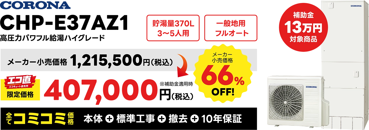 エコ直がおすすめするエコキュート商品即納!! 即工事!! 補助金対象